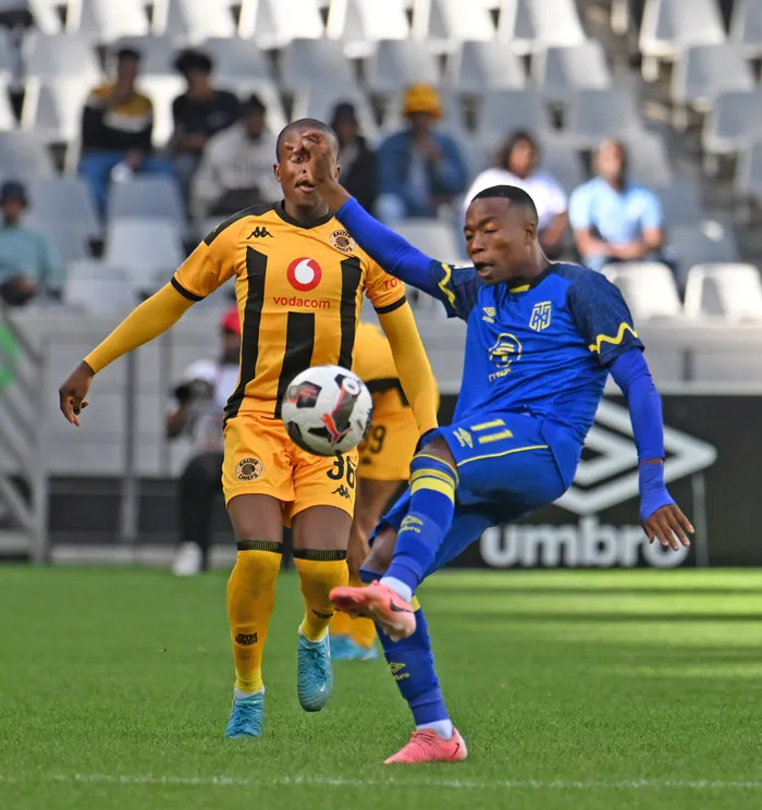 ISITOBHA seCape Town City, uTshegofatso Nyama, besithwele kanzima sivimba uWandile Duba weKaizeer Chiefs emdlalweni weBetway Premiership eCape Town Stadum, eKapa, ngeSonto ebusuku Isithombe:BACKPAGEPIX