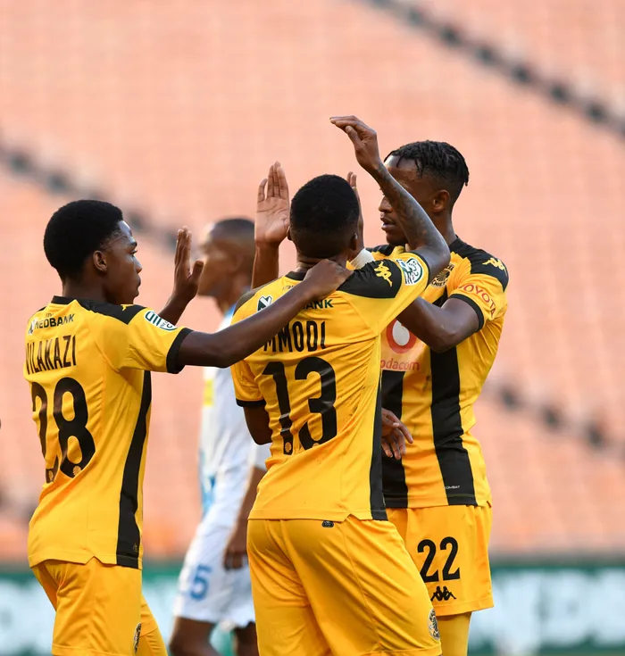 ABADLALI beKaizer Chiefs bejabulela elinye lamagoli kaPule Mmodi ngesikhathi bebhekene neFree Agents emdlalweni weNedbank Cup Last 32 eFNB Stadium, eNasrec, ngeSonto ebusuku Isithombe:BACKPAGEPIX