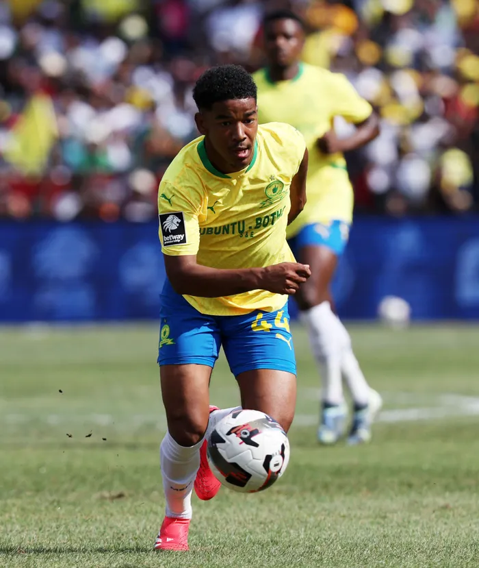 UMDLALI omusha weMamelodi Sundowns, uJayden Adams, ngomunye wababheke ukuzinza esikimini somqeqeshi uMiguel Cardoso phezu kokuba ushubile umbango wejezi kuleli qembu Isithombe: BACKPAGEPIX
