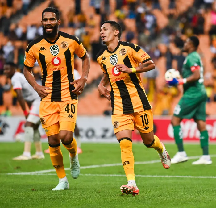 ABADLALI beKaizer Chiefs, uTashreeq Morris noGaston Sirino, bejabulela elinye lamagoli ngesikhathi bequmba phansi iChippa United ngo 3-0 koweNedbank Cup Isithombe: BACKPAGEPIX