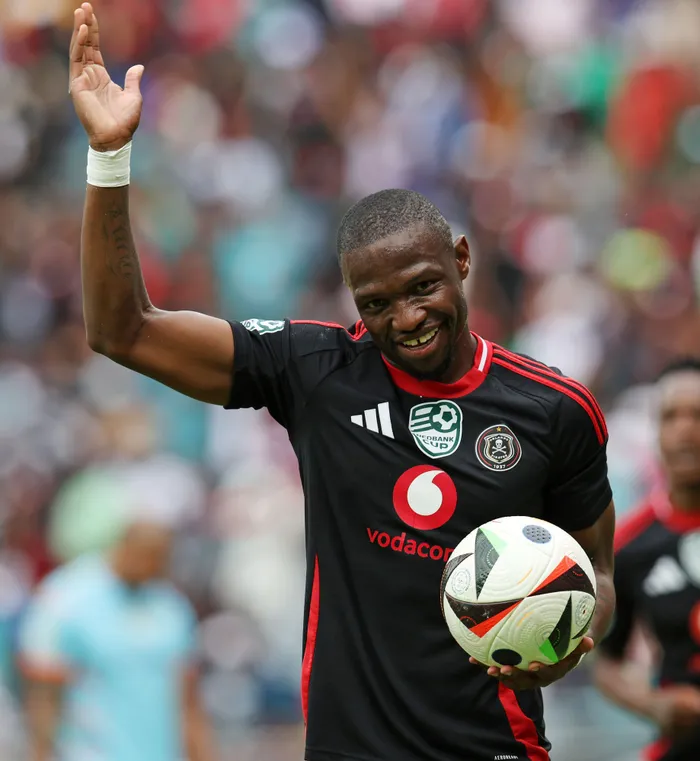 UMGADLI we-Orlando Pirates, uTshegofatso Mabasa, ugoduke nebhola obekudlalwa ngalo kulandela ukushaya amagoli amathathu ngesikhathi bebhekene neBaroka emdlalweni weNedbank Cup Last 16 e-Orlando Stadium, eSoweto, ngempelasonto Isithombe:BACKPAGEPIX