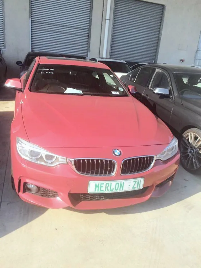 Kumanje iBMW 4 Series ebomvu kaDJ Merlon, owaziwa ngenoni elithi: Koze Kuse, Ubugingqigingqi neSonini, ise-Aucor, eRiverhorse Valley, eThekwini, okuyinkampani edayisa izimoto ezidliwe ngamabhange ngoba zingasakhokhelwa.