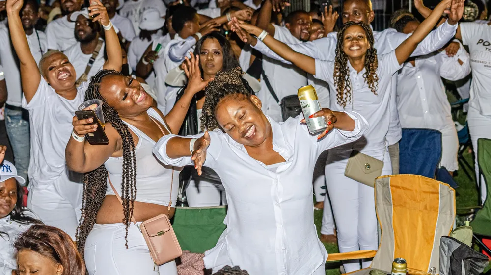 BAME eduze kwesiteji befuna ukubona kahle okwenzekayo emcimbini iGcwalisa Spring Picnic All White Isithombe: NQOBILE MBONAMBI