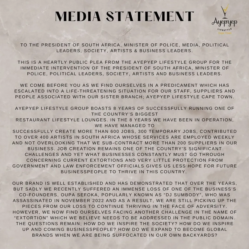ABAPHATHI bendawo yobumnandi i-Ayepyep eKapa banxusa umengameli, uhulumeni nomholi wamaphoyisa ukuba bangenele enkingeni ababhekene nayo ngeqembu lemigulukudu.