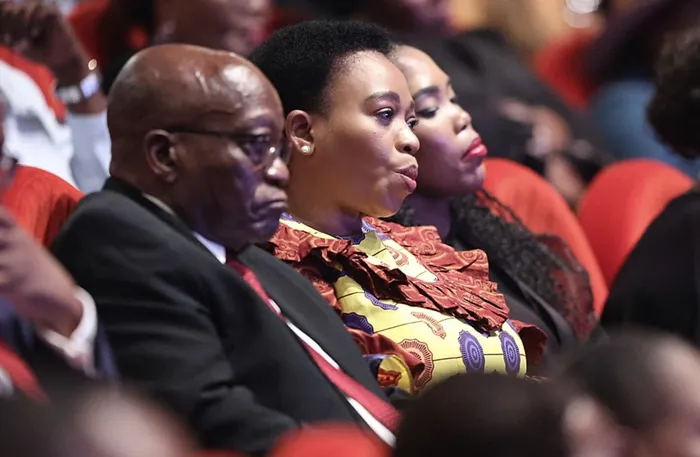 UMNUZ Jacob Zuma, uNdunankulu uNkk Nomusa Dube-Ncube nomfelokazi kaMbongeni Ngema, uNompumelelo Gumede ePlayhouse Opera Theatre Isithombe: SBONELO NGCOBO