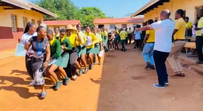 ESINYE sezithombe esicashunwe kwi-video abafundi bedansela ingoma entsha kaKhuzani, iNgena Kulayini ivideo: FACEBOOK