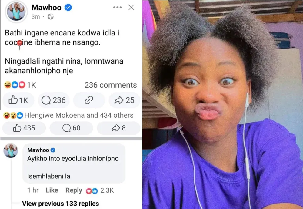 UMawhoo ufake umbhalo othi; “Bathi ingane encane kodwa idla i-cocain nensangu.”