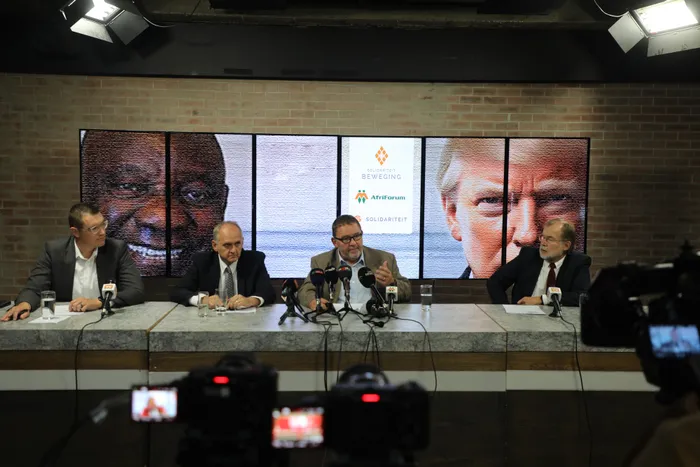 ABAHOLI beSolidarity Movement, AfriForum neSolidarity bebambe isithangami sabezindaba mayelana nesinqumo samaBhunu ngesiyalo sikaMengameli waseMelika, uMnuz Donald Trump isithombe: Oupa Mokoena / Independent Newspapers