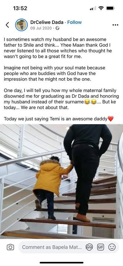 Phomolo@l_phomolo·Engikuthanda ngoDkt Celiwe Dada ukuthi uyawamela amaphutha akhe futhi akazenzi umuntu ongcono njengabaningi benu lapha. Uthatha amaphutha akhe futhi wazisa nabanye ukuze bangenzi amaphutha afanayo. Yekani ukumehlulela.