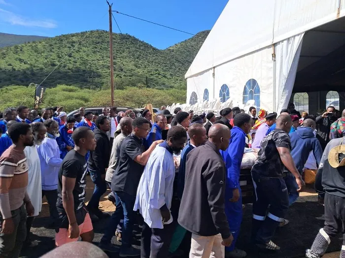 AMADODA engenisa ibhokisi ebelinesidumbu sikaDumisile KaManana Mthalane etendeni obekubanjelwe kuyo inkonzo yomngcwabo