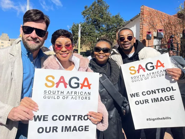 Abalingisi abangaphansi kwenhlangano iSouth African Guild of Actors (Saga), bakusho lokhu izolo, ngesikhathi benombhikisho eConstitution Hill, eGoli, lapho kuneNkantolo yoMthethosisekelo khona.