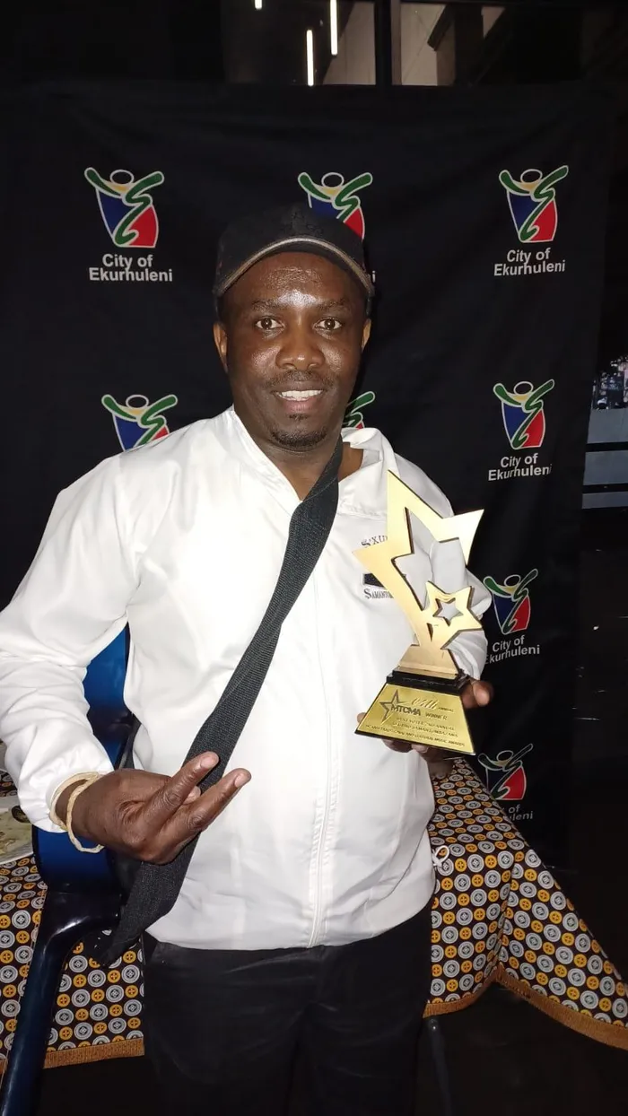 UXOLANI 'Sxubho Samantombazane' Mkhize owine indondo yeBest Male Artist kuMzansi Traditional and Cultural Music Awards eDumisani Masilela Theatre, eGerminston, eGoli ngoMgqibelo