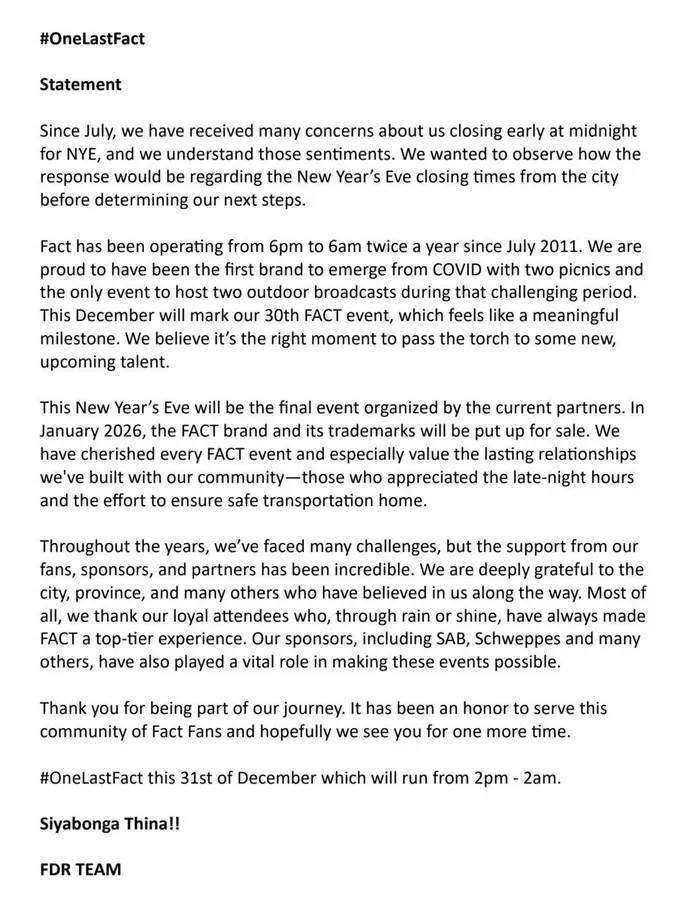 Uphawu lwe-FACT Durban Rocks selufakwe endalini, ngakho-ke abanesifo so sokuluthenga bangasondeli. Umcimbi wokuhlukanisa unyaka ka2025 uphawula lokugcina ngaphansi kukaTira nethimba lakhe.