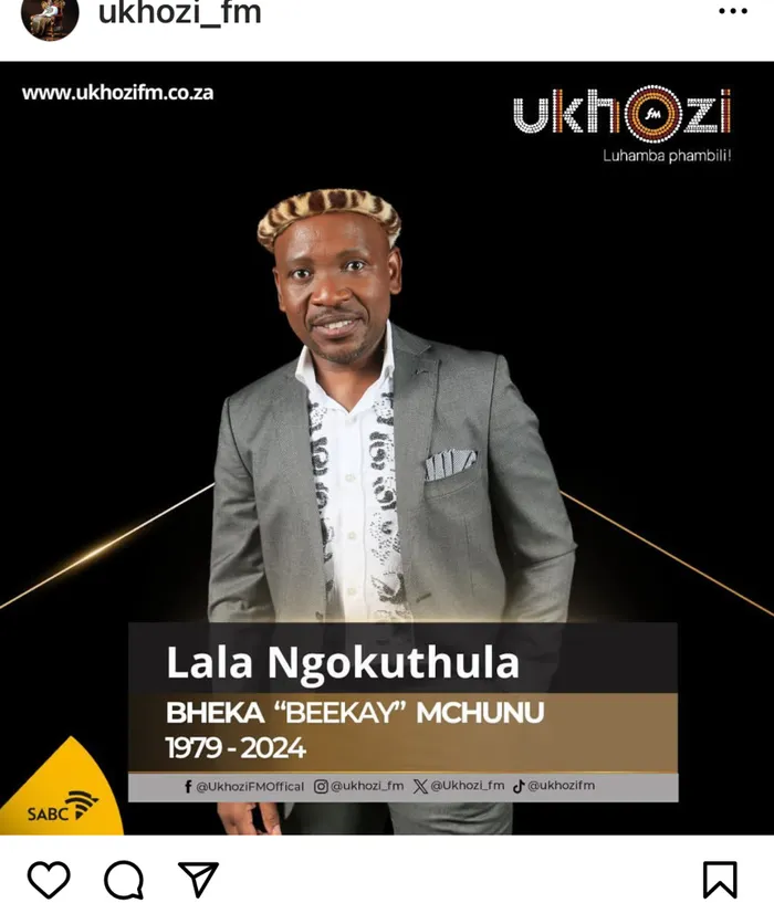 Umsakazi woKhozi FM uBheka “Beekay” Mchunu ushone ngoLwesibili ngemuva kokugula isikhathi.