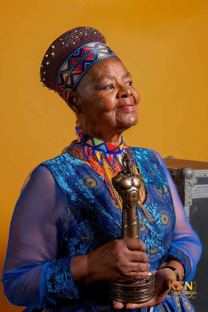 UCYNTHIA Shange nendondo yeLifetime Achievement ahlonishwe ngayo kumaSimon Mabhunu Sabela KZN Film and Television Awards ngempelasonto Isithombe: SITHUNYELWE