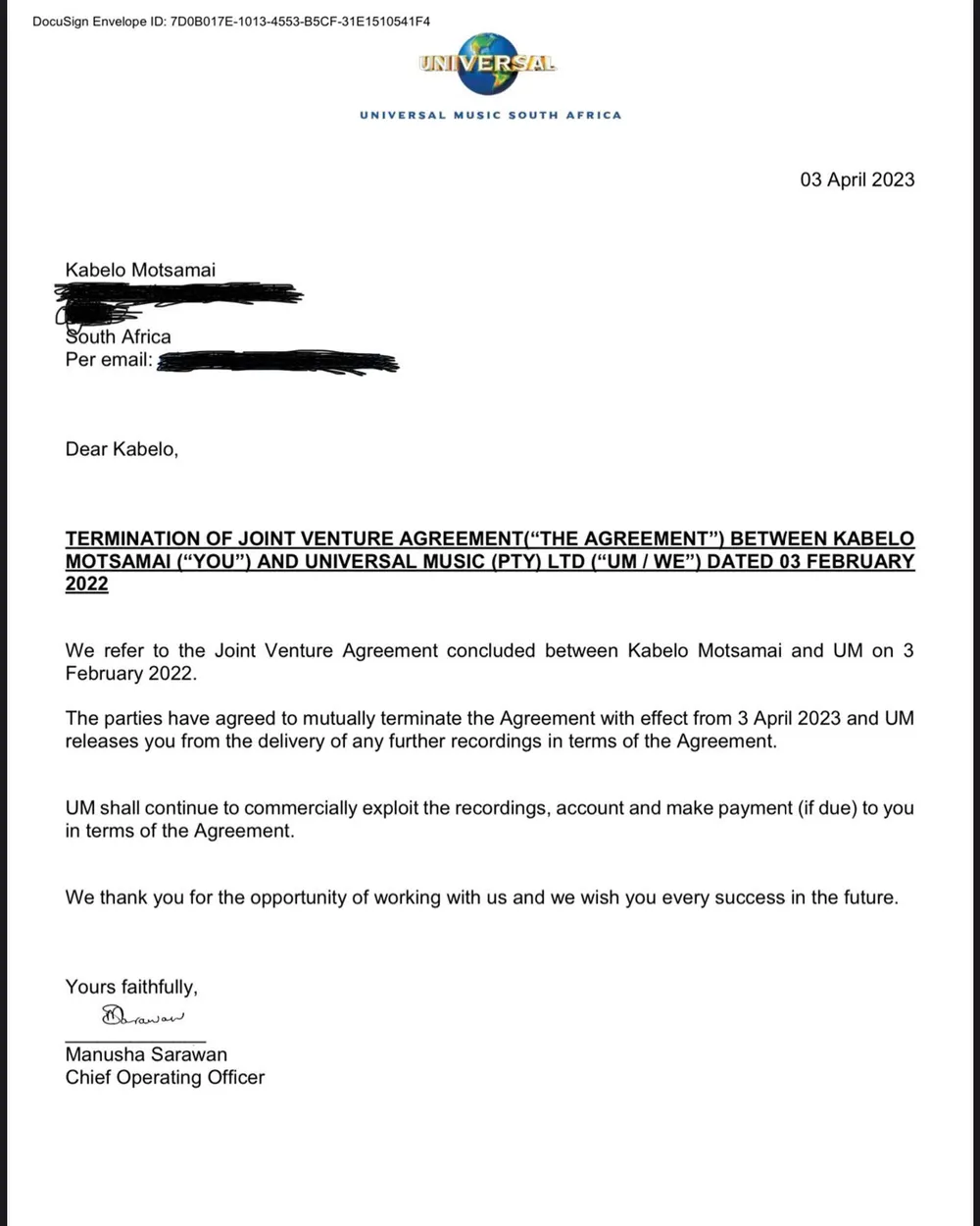 UBONGA inkululeko uDj wakuleli omemezele ukuthi siphelile isivumelwano sokusebenzisana phakathi kwakhe nesikhondlakhondla senkampani yomculo, i-Universal Music Group. Lokhu kwenzeka emuva kweminyaka eyisishagalombili uPrince Kaybee, esebenzisana nenkampani. "Ngikhululekile, emuva kweminya eyisishagalombili," kubhala uKaybee ekhasini lakhe lezokuxhumana maqede wabhansela ngenhliziyo.
