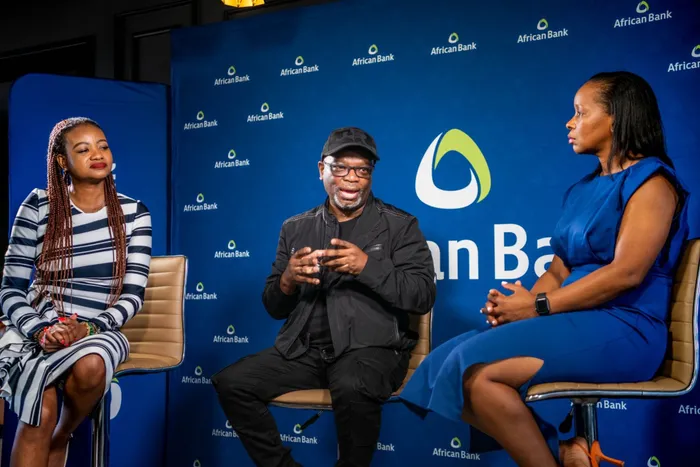 Umqondisi wezokuxhumana e-African Bank, uNksz Mikateko Chauke, uLindelani Mkhize weJoyous noNksz Zinhle Zulu Isithombe SITHUNYELWE.