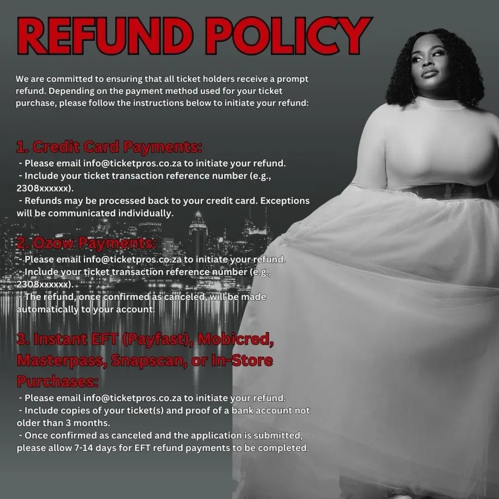 Abantu abebenamathikithi bathunyelwe imilayezo eqinisekisa ukuthi bazobuyiselwa imali yabo ngoba ungasezukuba khona umcimbi.