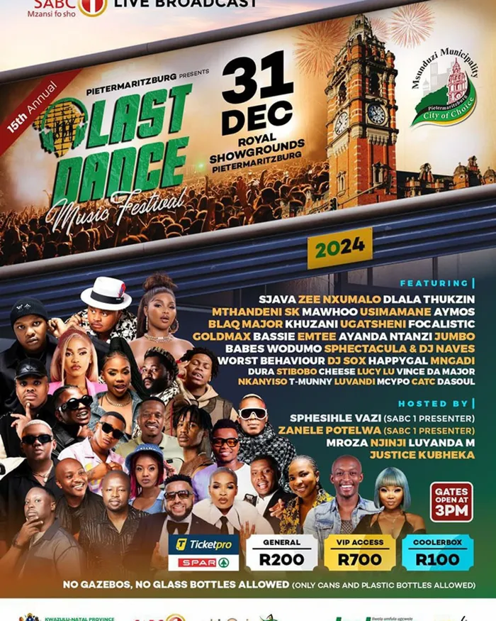WONKE amabombo kubathandi bobumnandi abheke kwiLast Dance Music Festival eseRoyal Showgrounds eMgungundlovu kusukela ngabo-4 ntambama kuze kuyolamula ukusa ngakusasa.