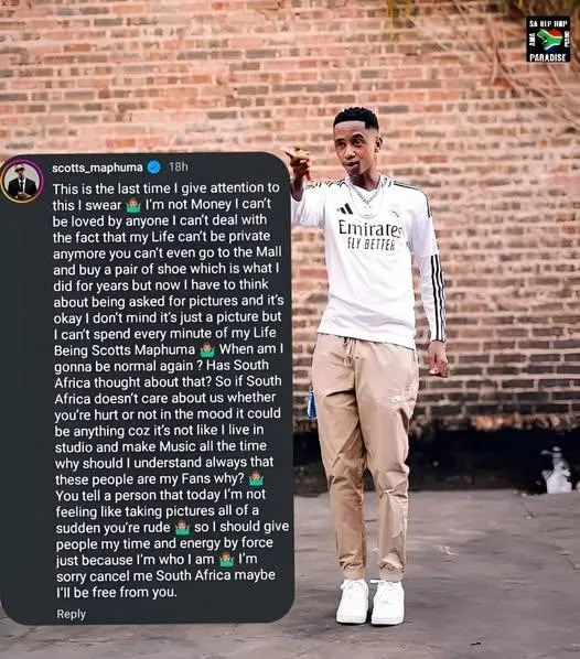 “Manje uma ngitshela umuntu ukuthi angikho esimweni esihle sokushutha naye, sengiyedelela ngalokho? Kungani kumele nginike abantu isikhathi sami namandla ami ngenkani ngenxa yokuthi ngiyilomuntu engiwuyena manje? Ngiyaxolisa, ningamane niqede ngodumo lwami ukuze ngikhululeke kukho konke lokhu,” kusho uScotts.