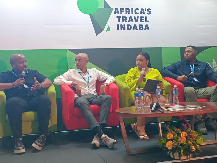 KUSUKELA kwesokunxele wuMnuz Sanele Zulu, Mnuz Ndabenhle Ntshangase, Nksz Zama Khumalo noMnuz Sandile Cele, becobelelana ngolwazi lwezokuvakasha kusongwa i-Africa's Travel Indaba, e-ICC, eThekwini izolo