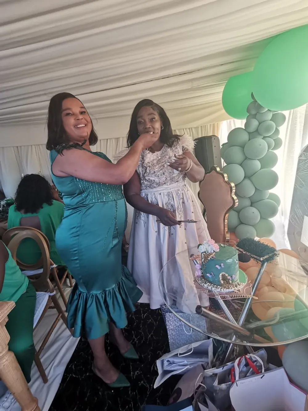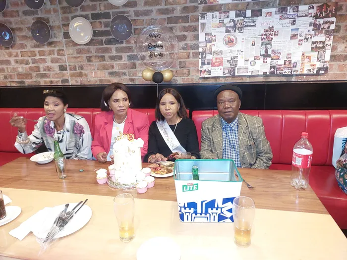 UNKSZ Thembi Mbatha ubegubha iminyaka engu-60 esadla anhlamvana. Umcimbi wakhe ubuseNtuzuma. Esithombeni ufunzwa ikhekhe yindodakazi wakhe uNksz Gugu Mbatha Isithombe: SITHUNYELWE