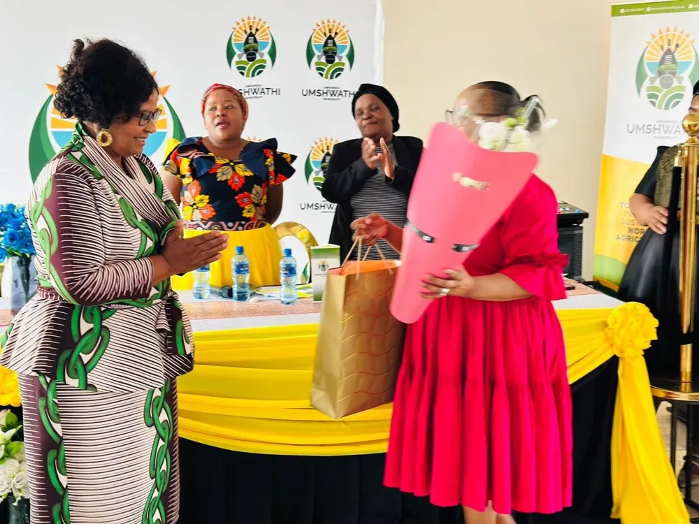 UNDLUNKULU uTE Maphumulo imukeliswa isipho nguMasipala waseMshwathi emuva kokwethula inkulumo enohlonze Isithombe: FACEBOOK