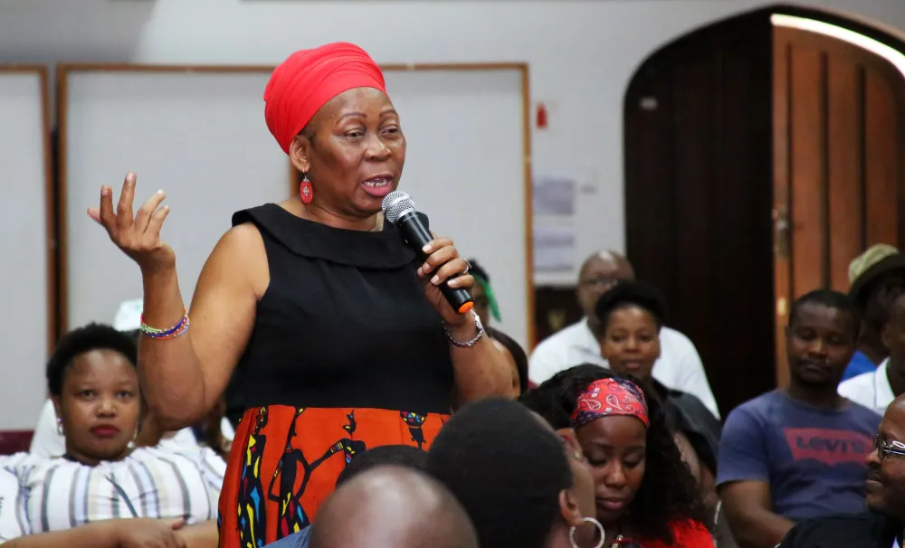 INKAKHA yomxoxi wezinganekwane, uDkt Gcina Mhlophe, ikhuluma kwi-Articulate Africa 2024, eNatural Science Museum, eThekwini Isithombe: TUMI PAKKIES
