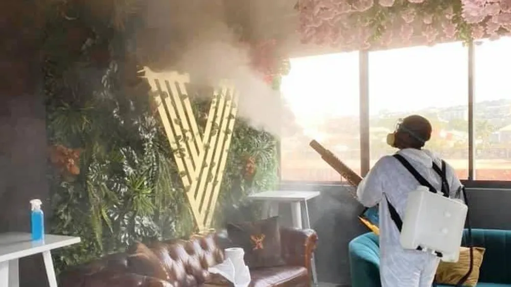 “Siqala ngokuhlola ibhilidi, bese sisebenzisa imishini yethu ekhipha okusantuthu okumhlophe okuthwele i-hydrogen peroxide okuyiyona ebulala kwasani eyigciwane elingaba khona endaweni,” kuchaza uTumelo.