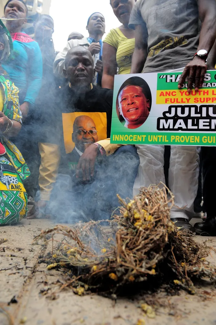 614 Members and followers of ANC burn impepho outside the Johannesburg High court where president of the ANCYL, Julius Malema is appearing for hate speech. 150411 Picture: Boxer Ngwenya