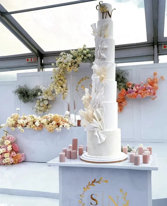 Izimbali zangempela nezingamathoyizi nazo ziwahlobisa kahle amakhekhe omshado.