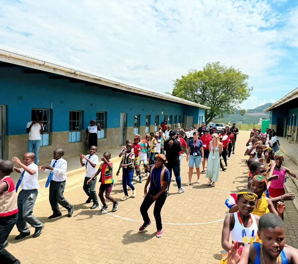 NjengasenNkelabantwana, abafundi, othisha nabazali bebechichima yinjabulo futhi basamukele ngomculo. Baholwa wuthishanhloko, uPhili Ngcobo.