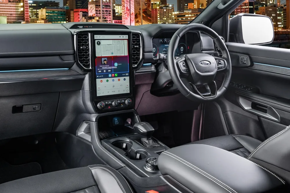 Ine-instrument cluster engu-12.4 inch efana neyeRaptor. Iphinde ibe netouchscreen infotainment system engu-12inch, amakhamera aveza umzimba wonke kanjalo nezipikha zeB&O.