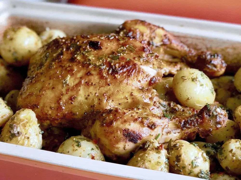 Endishini enkulu xuba izithako bese ugcoba inkukhu ngaphandle nangaphakathi. Goqa inkukhu ngephepha lokubhaka (foil) bese uyifaka kuhhavini upheke imizuzu engu-45. Susa i-foil uphinde upheke imizuzu engu-15 ize ishintshe umbala inkukhu. Ungayiphaka ne-rice noma imifino.