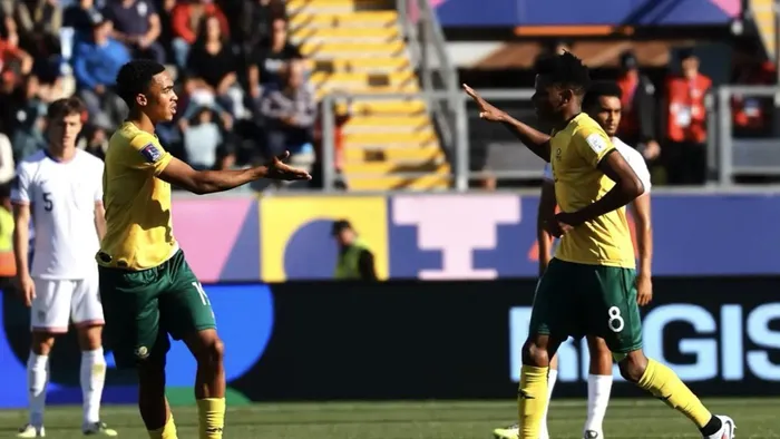 UTHATO Sibiya noGomolemo Kekana bejabulela igoli Amajita awine ngalo kwi-USA kowokusonga iqoqo kwiNdebe yoMhlaba yeFifa eqhubeka eChile