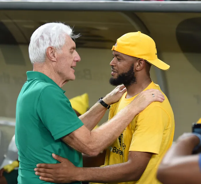 UMQEQESHI weBafana Bafana, uHugo Broos nomdlali wasesiwini uSipho Mbule, eMbombela Stadium, eNelspruit