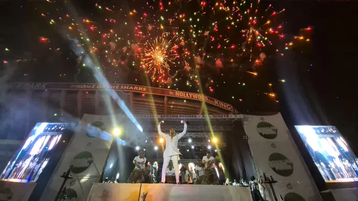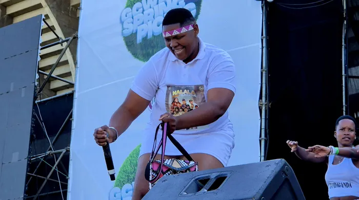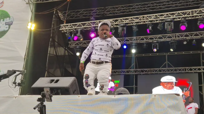 INTANDOKAZI yomculi kamaskandi uKhuzani Indlamlenze Mpungose enandisa kwiGcwalisa Spring Picnic, ebiseHollywoodbets Kings Park Stadium, eThekwini ngoMgqibelo ebusuku