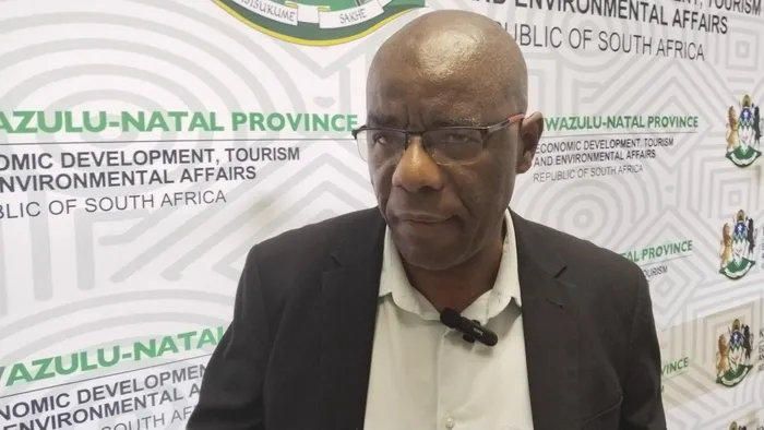 UMQONDISI woPhiko lwezokuSebenza eMnyangweni wokuThuthukisa uMnotho, ezokuVakasha nokoNgiwa kweMvelo uMnuz Nhlanhla Mpondi, ekhuluma esithangamini nabezindaba ebesiso-Ugu Sports & Leisure Centre, eGamalakhe, ePort Shepstone ngoLwesine