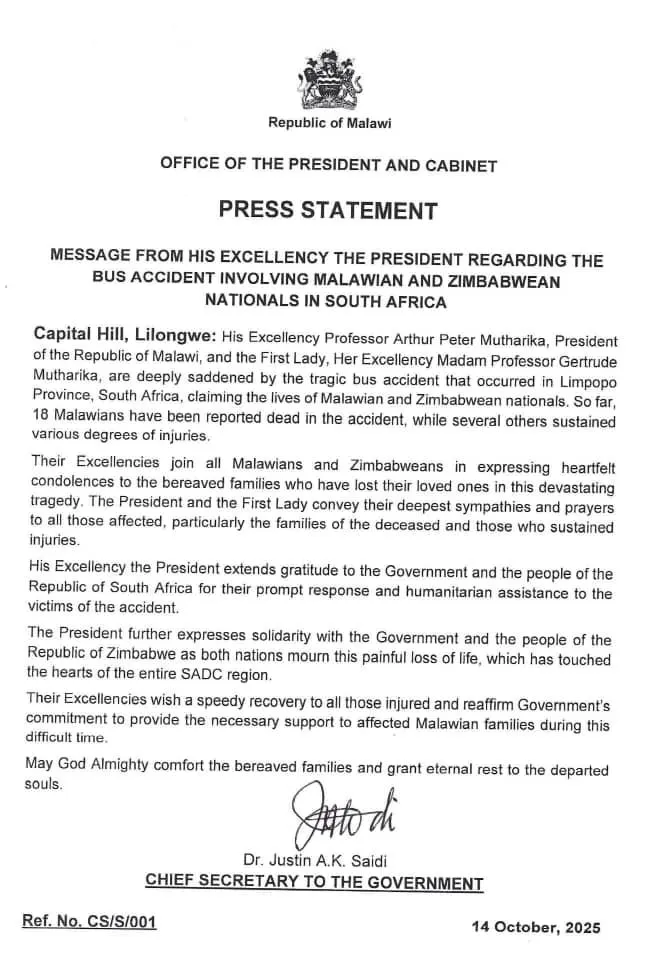 "Uhulumeni wesifundazwe saseLimpopo uqale inqubo yokuhlonza izidumbu ngokusebenzisa ulibofuzo ngengozi yebhasi i-N1 eMakhado, ikakhulukazi inqubo yokuhlonza amathambo," kusho yena.
