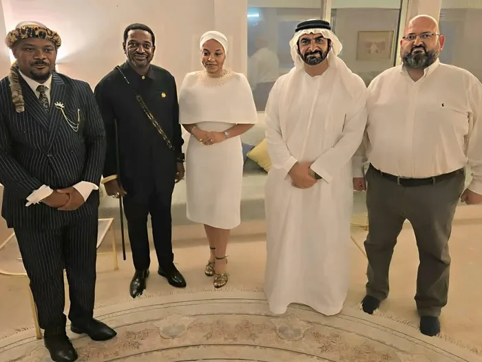 ISilo uMisuzulu kaZwelithini besiphelezelwa undlunkulu uSihle Mdluli sivakashele uSheikh Alhassan Bin Ali Al-Nuaimi esigodlweni sakhe e-Ajman, e-United Arab Emirates.