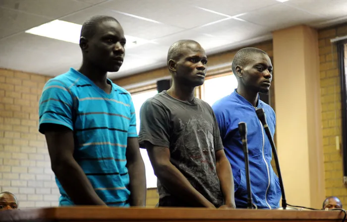 017 01.10.2012 Paida Fish(L), Chris Moyo(C) and Samuel Mabena, appear in the Brits Magistrate Court for the murder of former world heavyweight boxing champion Corrie Sanders. Picture: Itumeleng English 017 01.10.2012 Paida Fish(L), Chris Moyo(C) and Samuel Mabena, appear in the Brits Magistrate Court for the murder of former world heavyweight boxing champion Corrie Sanders. Picture: Itumeleng English