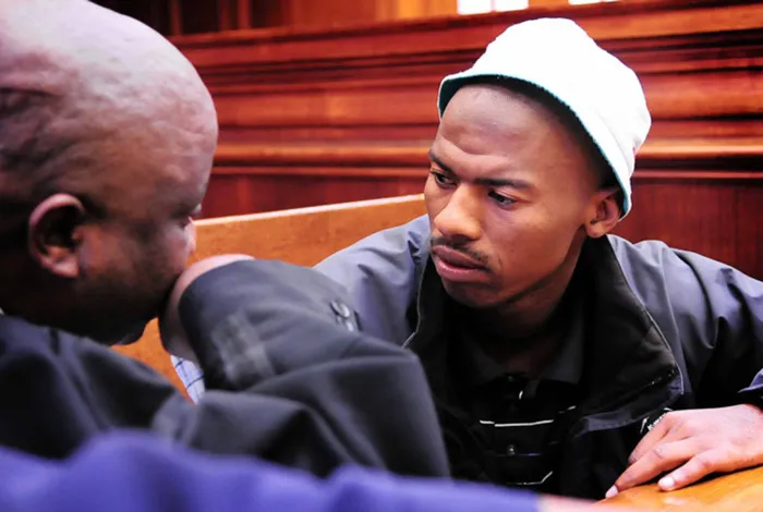 Cape Town.23/10/12-Matthews Dyamani consults his client Xolile Mngeni in the state vs Xolile Mngeni at the Cape High Court. Pictures:Brendan Magaar. Reporter:Shellee Geduld Cape Town.23/10/12-Matthews Dyamani consults his client Xolile Mngeni in the state vs Xolile Mngeni at the Cape High Court. Pictures:Brendan Magaar. Reporter:Shellee Geduld