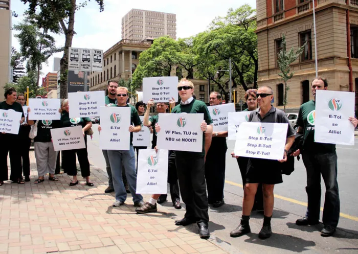 084 02/11/2013 The Freedom Front members at Pretoria High Court, where they were protesting against the e-toll, which are kicking off tonight. Picture: Giyani Baloi 084 02/11/2013 The Freedom Front members at Pretoria High Court, where they were protesting against the e-toll, which are kicking off tonight. Picture: Giyani Baloi