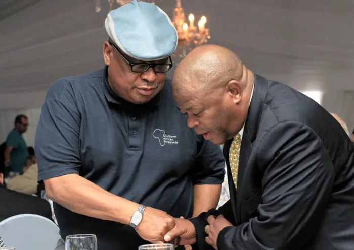 DURBAN: 210814 Tau Morwe Chief excutive of transnet National Ports Authority and Don Mkhwanazi Chairman of the Southern African Shipyards in Bayhead Rd at the Durban Port PICTURE: GCINA NDWALANE DURBAN: 210814 Tau Morwe Chief excutive of transnet National Ports Authority and Don Mkhwanazi Chairman of the Southern African Shipyards in Bayhead Rd at the Durban Port PICTURE: GCINA NDWALANE