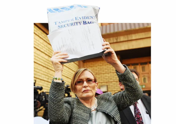 04/09/2014 Democratic Alliance (DA) leader Helen Zille holds the so-called spy tapes outside the North Gauteng High Court after they were handed over by the National Prosecuting Authority (NPA). Picture: Phill Magakoe 04/09/2014 Democratic Alliance (DA) leader Helen Zille holds the so-called spy tapes outside the North Gauteng High Court after they were handed over by the National Prosecuting Authority (NPA). Picture: Phill Magakoe