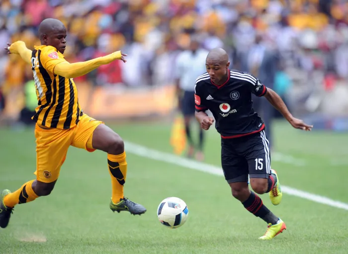 Willard Katsande of Kaizer Chiefs tackles Thabo Qalinge of Orlando Pirates during the Absa Premiership match between Orlando Pirates and Kaizer Chiefs on 30 January 2016 at Willowmoore Park Pic Sydney Mahlangu/ BackpagePix Willard Katsande of Kaizer Chiefs tackles Thabo Qalinge of Orlando Pirates during the Absa Premiership match between Orlando Pirates and Kaizer Chiefs on 30 January 2016 at Willowmoore Park Pic Sydney Mahlangu/ BackpagePix