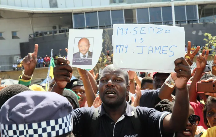 UMnuz Sthenjwa Nyawose ongumholi wamamashi abaseka uMnuz Senzo Mchunu owayephethe izingqwembe eziseka uMchunu ngesikhathi babemashela ukuhlulwa kwakhe okhethweni lobuholi be-ANC eKZN. Isithombe: NQOBILE MBONAMBI UMnuz Sthenjwa Nyawose ongumholi wamamashi abaseka uMnuz Senzo Mchunu owayephethe izingqwembe eziseka uMchunu ngesikhathi babemashela ukuhlulwa kwakhe okhethweni lobuholi be-ANC eKZN. Isithombe: NQOBILE MBONAMBI