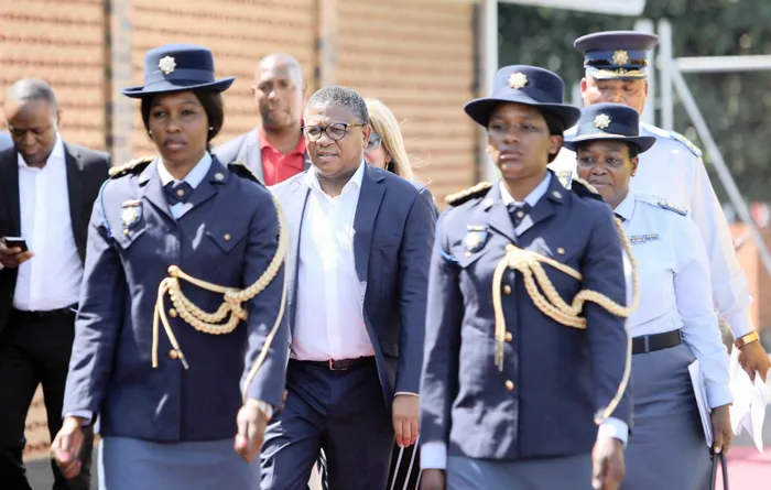 UNGQONGQOSHE wamaphoyisa kuleli uMnuz Fikile Mbalula othathwe ngenkathi ekifa ezovula isiteshi samaphoyisa eGlebelands izolo Isithombe: Motshwari Mofokeng UNGQONGQOSHE wamaphoyisa kuleli uMnuz Fikile Mbalula othathwe ngenkathi ekifa ezovula isiteshi samaphoyisa eGlebelands izolo Isithombe: Motshwari Mofokeng