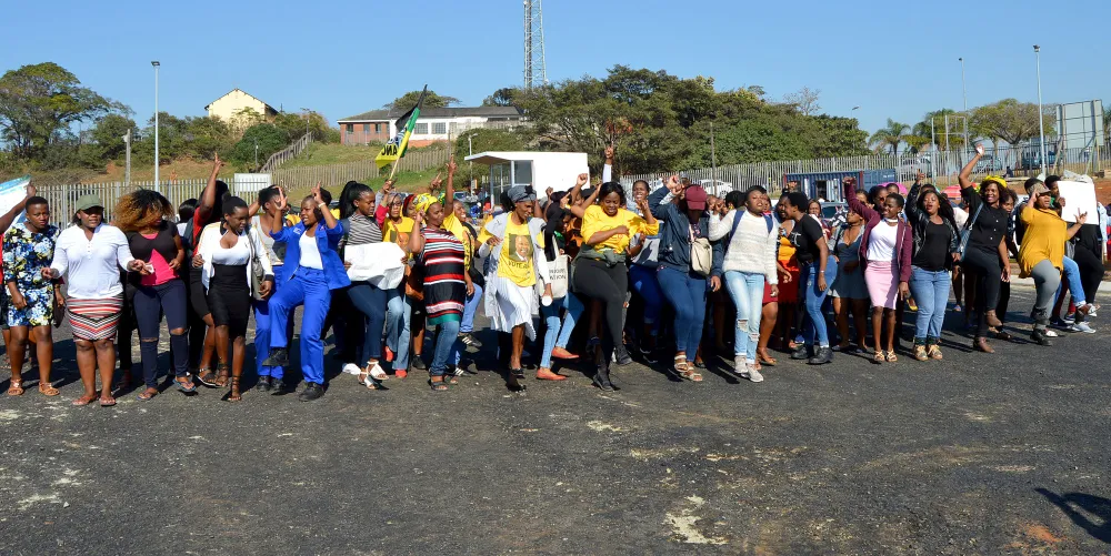 AMALUNGU omphakathi ababhikisha ngaphandle kwenkantolo izolo. Isithombe: TUMI PAKKIES/ANA