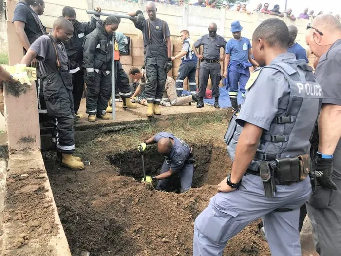 ABEZIMO eziphuthumayo namaphoyisa basebenza kanzima behlenga ingane ezelwe ebibhajwe esitamkokweni eNewlands East izolo ABEZIMO eziphuthumayo namaphoyisa basebenza kanzima behlenga ingane ezelwe ebibhajwe esitamkokweni eNewlands East izolo